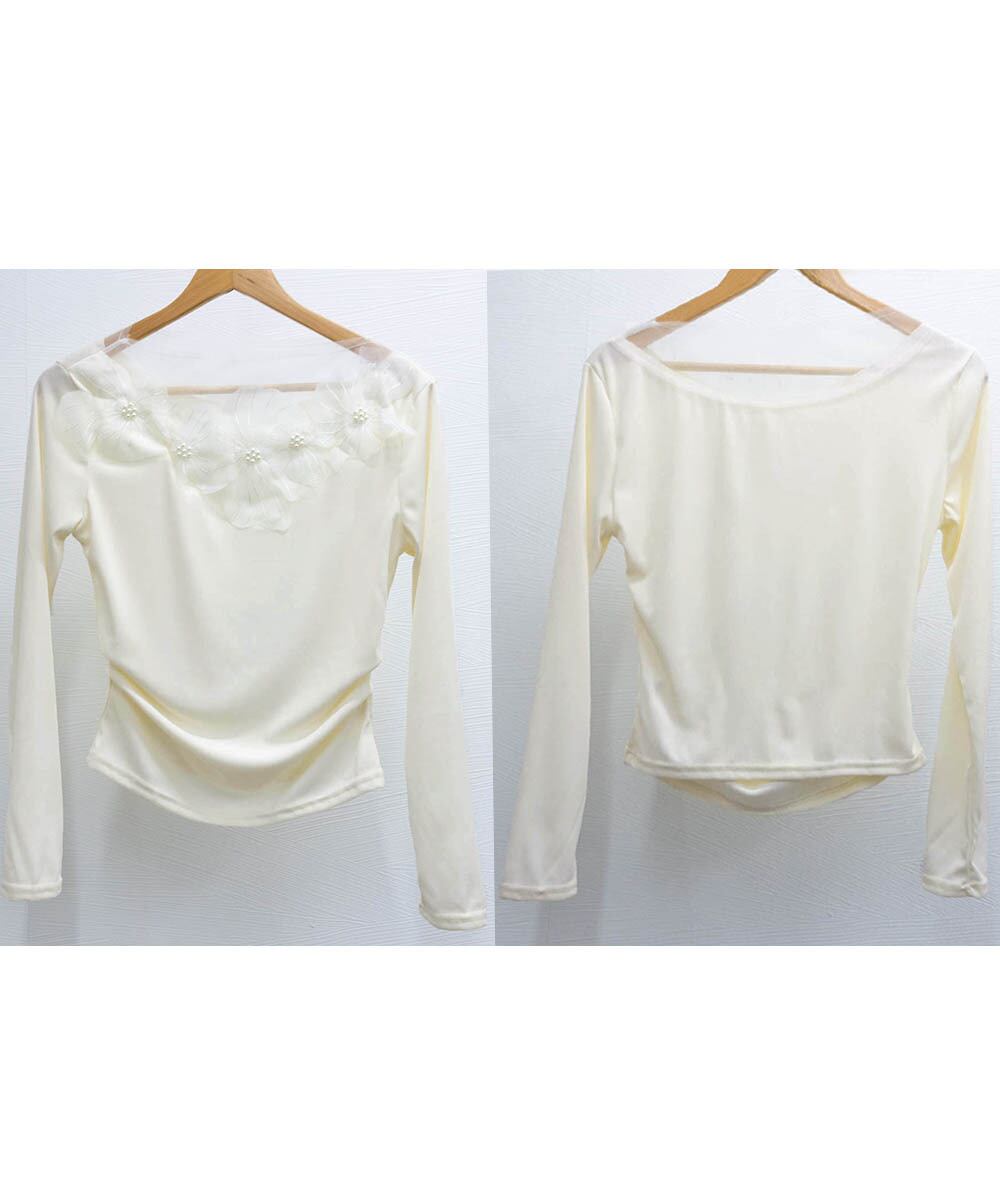 大胆な立体花びらデザインが目を引くトップスです。